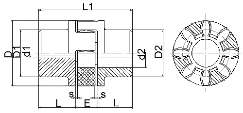 XL(LX)型彈性星型聯軸器 特點及應用場合:具有補償兩軸相對偏移、減振、緩沖性能、徑向尺寸小,結構簡單、不用潤滑、承載能力較高,維護方使、更換彈性元件需軸向移動,適用于聯接同軸線,起動頻繁,正反轉變化,中速、中等轉矩傳動軸系和要求工作可靠性高的工作部位。不適用于重載、低速及軸向尺寸受艱制,更換彈性元件后兩軸對中困難的部位。 XL型--基本型;XLD型--擴大軸孔型;