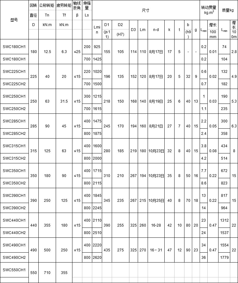 SWC-CH長(zhǎng)伸縮焊接式萬向聯(lián)軸器基本參數(shù)與主要尺寸(JB/T 5513-91) mm